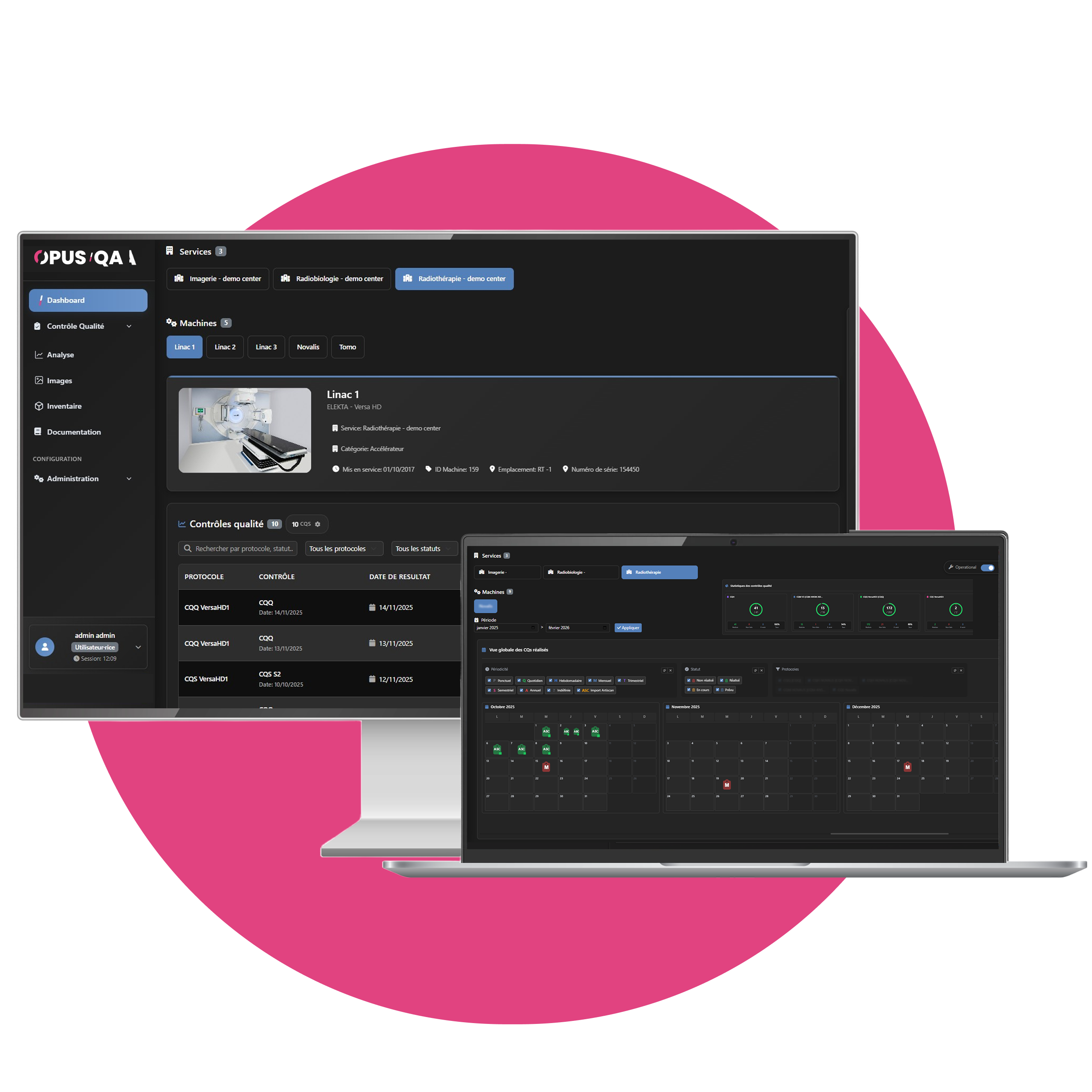 Le Dashboard est la page d'accueil d'OPUS QA. Il offre une vue complète de l'état de vos équipements et des contrôles qualité réalisés. Deux modes d'affichage s'adaptent à tous les usages : le quotidien de l'opérateur comme la supervision du responsable qualité.